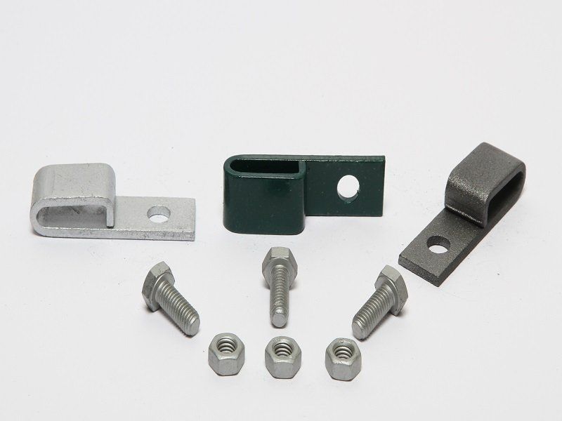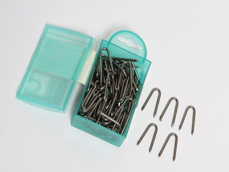 Accessorio in ferro a U utilizzato per fissare la rete al palo.