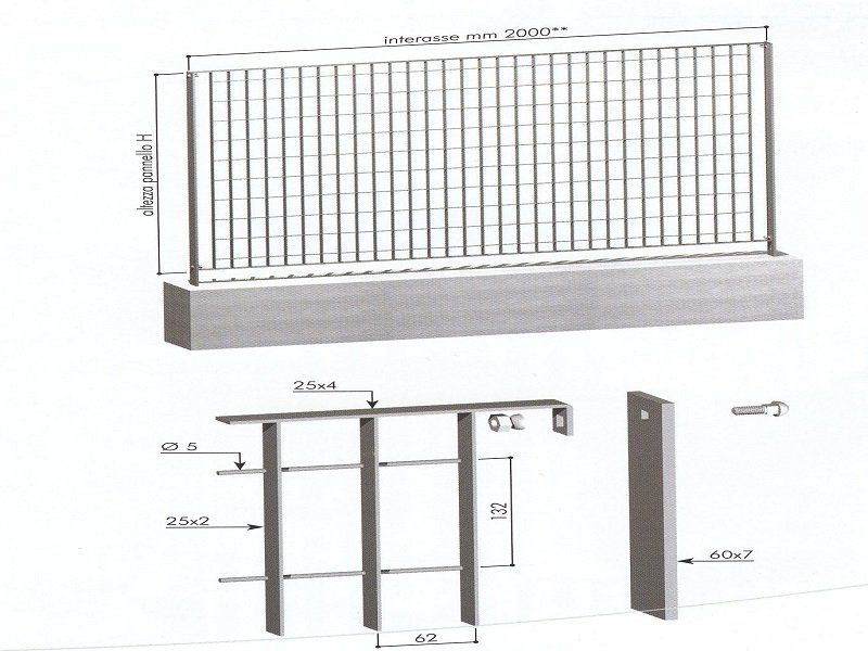 Può essere posato su un muretto esistente o su terreno attraverso le apposite piantane a cementare o a tassellare. Le piantane a tassellare sono composte da una piastra a 2 o 4 fori.